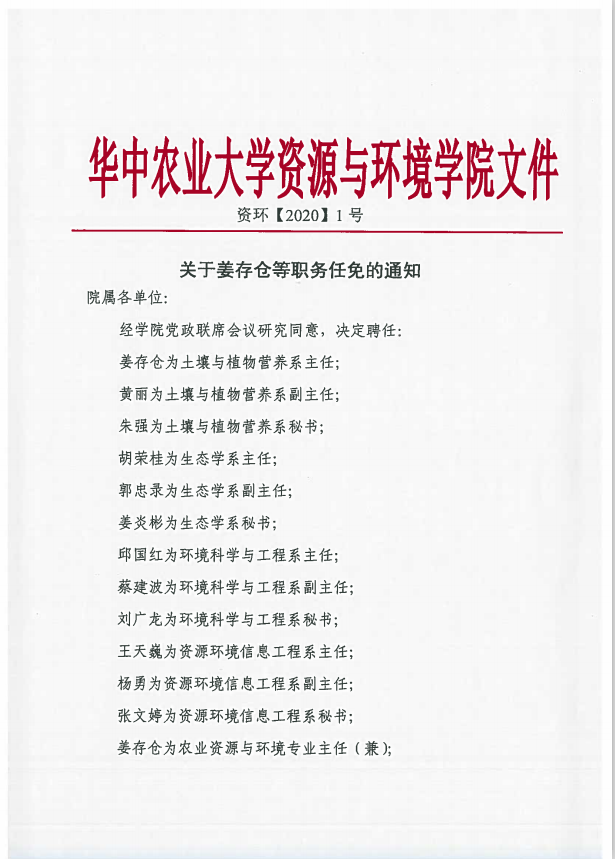 关于姜存仓等职务任免的通知