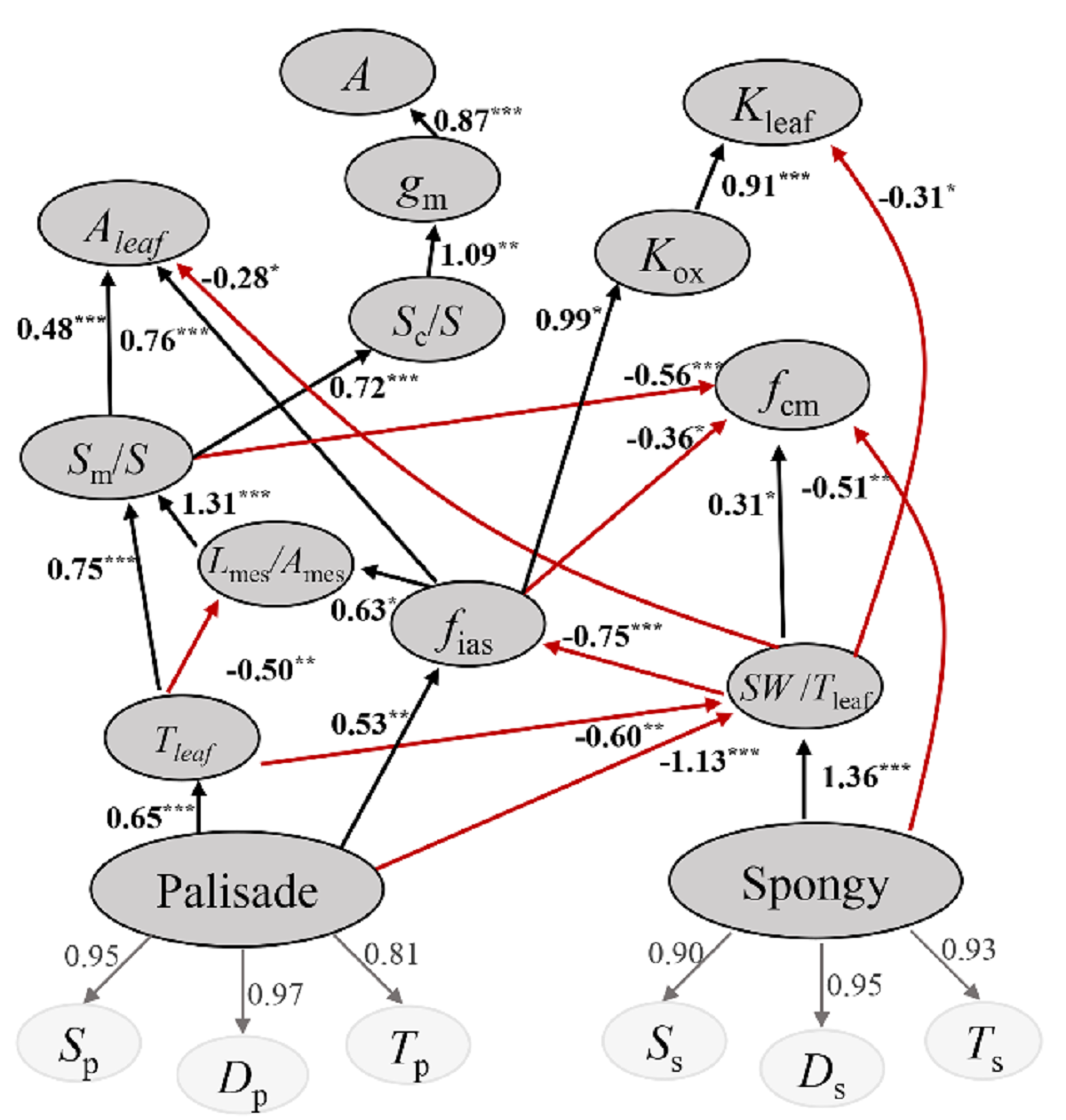 Leaf growth relies on photosynthesis and hydraulics to provide carbohydrates and expansion power; in turn, leaves intercept light and construct organism systems for functioning. Under potassium (K) deficiency stress, leaf area, photosynthesis and hydraulics are all affected by alterations in leaf structure. However, the connection between changes in leaf growth and function caused by structure under K regulation is unclear. Consequently, the leaf hydraulic conductance (Kleaf) and photosynthetic rate (A) combined with leaf anatomical characteristics of Brassica napus were continuously observed during leaf growth under different K supply levels. The results showed that Kleaf and A decreased simultaneously after leaf area with the increasing K deficiency stress. K deficiency significantly increased longitudinal mesophyll cell investment, leading to reduced the volume fraction of intercellular air-space (fias) and decreased leaf expansion rate. Furthermore, reduced fias decreased mesophyll and chloroplast surfaces exposed to intercellular airspace and gas phase H2O transport, which induced coordinated changes in CO2 mesophyll conductance and hydraulic conductance in extra-xylem pathways. Adequate K supply facilitated higher fias through smaller palisade tissue cell density (loose mesophyll cell arrangement) and smaller spongy tissue cell size, which coordinated CO2 and H2O conductance and promoted leaf area expansion.