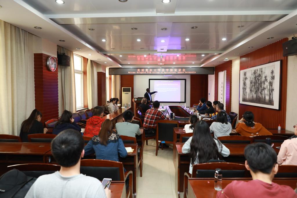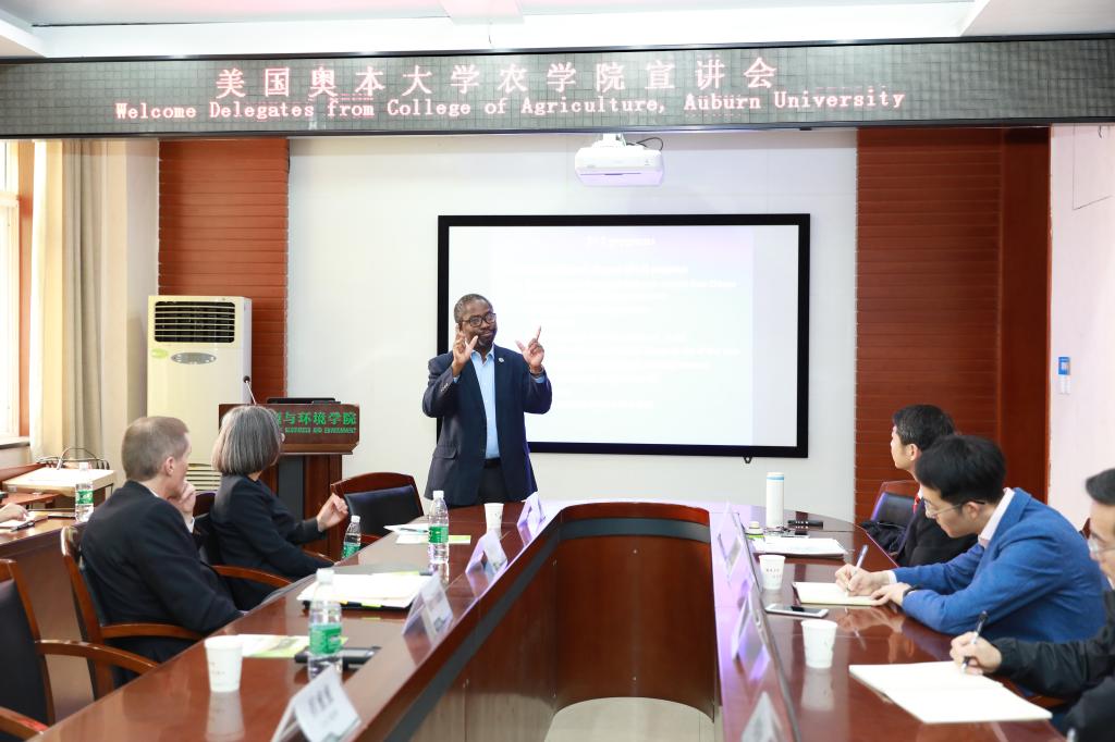 4月17日下午,美国奥本大学农学院院长Paul Patterson、副院长Henry Fadamiro、作物土壤和环境科学系教授冯宇澄一行三人来51黑料网 交流,并在51黑料网 开展宣讲会。会议由学院院长黄巧云主持。副院长唐铁军、冯雄汉教授、刘广龙副教授、何阳波老师、贺佳杰老师及学生代表参加了会议。