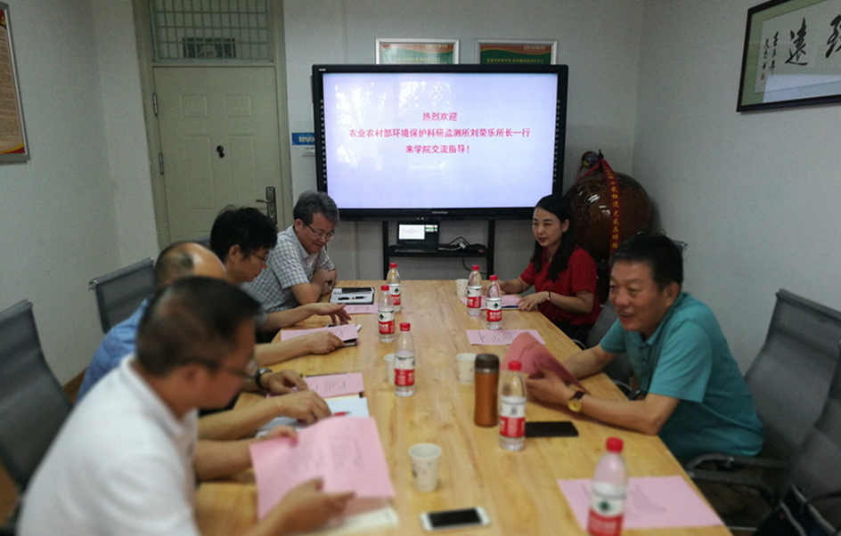 9月17日下午,农业农村部环境保护科研监测所所长刘荣乐与科研处处长周莉来访学院,学院党委书记唐仁华、校研究生院综合办、培养办主任郑学刚、副院长石磊和胡荣桂教授接待了刘荣乐所长一行。