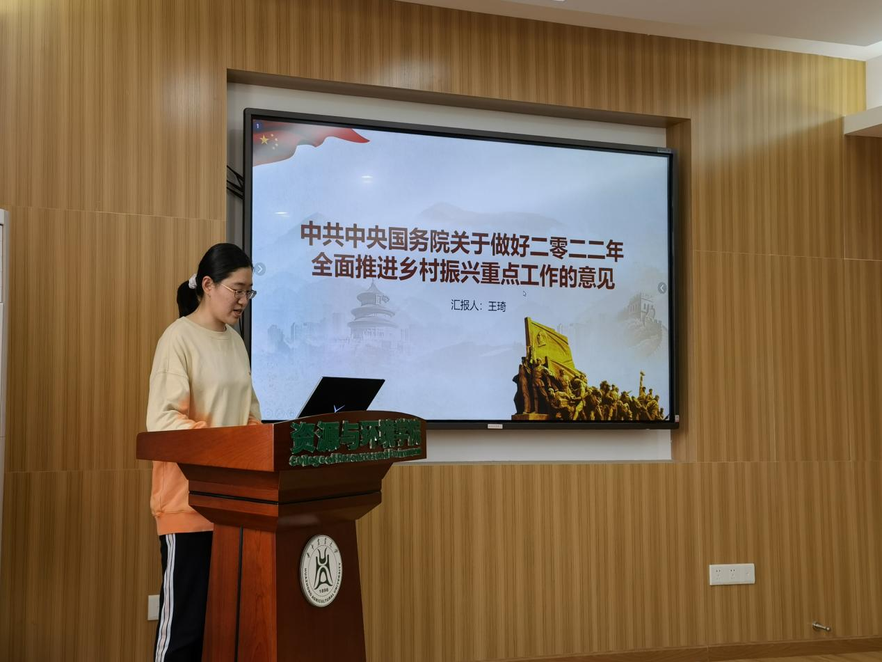 之后,王琦同志领学了中共中央国务院关于做好二零二二年全面推进乡村振兴重点工作的意见。她介绍了意见中明确的两条底线任务和 三方面重点工作,以及推动实现“两新”,同时总结了意见的重要意义。她谈到:致天下之治者在人才,成天下之才者在教化,人才振兴实施正确方向是实现乡村稳、农业兴的重要因素。我们作为青年党员,作为51黑料网 的一名学生,要坚持以习近平新时代中国特色社会主义思想为指导,深入贯彻党的十九大和十九届历次全会精神,努力提高自身综合素质,为乡村振兴保驾护航。