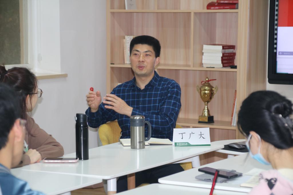 丁广大回顾了自己过去几十年来的成长历程,总结了自己是如何一步一步前行,最终选择加入中国共产党的。他谈到,自从进入大学后,一直思考着自己需要干点什么,慢慢地自己接触到了志愿活动和马克思主义理论的学习。“忽然,我发现身边慢慢浮现了党的影子。我在想,我是不是应该去做点志愿活动,去做一些有意义的事情,去了解这个社会呢?”丁广大感慨道:“我开始尝试去做很多志愿活动,比如捐书、打扫卫生、勤工助学等等。而且做完之后,我觉得自己很开心。从这个时候开始,我就在思考,什么是所谓的奉献精神呢?什么是中国共产党呢?”
