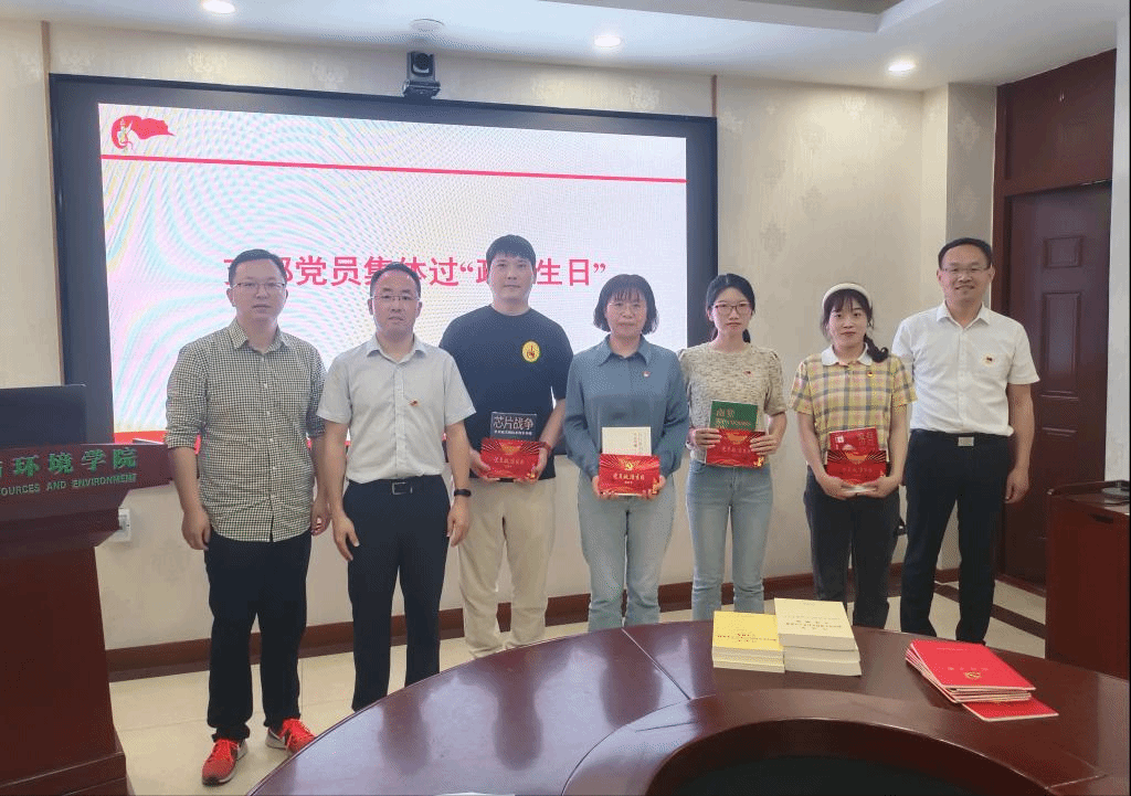 理论学习结束后,支部为5月份加入党组织的四位党员同志集体过了政治生日,学院党委副书记熊海林、副院长蔡鹏和党支部书记戴珂为党员同志赠送了政治生日贺卡和纪念册,并勉励同志们真正做到不忘初心、牢记使命,永葆共产党员的先进本色。