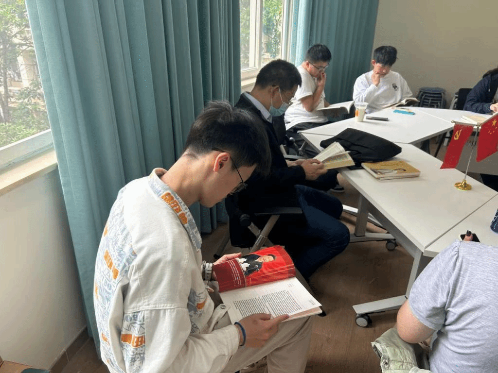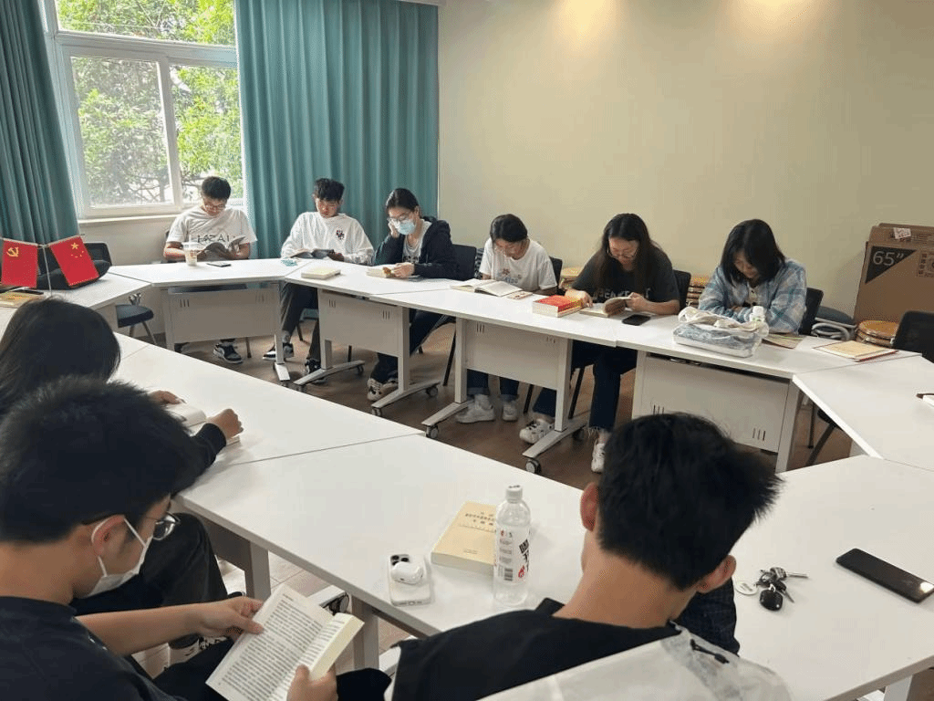 在活动室中,学院统一提供了《习近平著作选读》《习近平新时代中国特色社会主义思想学习纲要》《习近平新时代中国特色社会主义思想专题摘编》《习近平谈治国理政》等一系列红色书籍及报刊作为阅读材料,在活动期间,学院部分红色导师也与同学们一起积极参加读书活动。