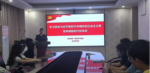 支部书记许泽远围绕“学习习近平新时代中国特色社会主义思想,争做新时代好青年”主题讲授主题教育专题党课,他谈到,习近平总书记在党的二十大报告中勉励大家要立志做“有理想、敢担当、能吃苦、肯奋斗”的新时代好青年,作为新时代好青年,许泽远从坚定理想信念、牢记党的宗旨、永葆政治本色、坚持勤奋学习、积极努力工作、自觉遵守纪律等六个方面与支部党员共勉,并结合雷锋同志、钟南山院士、徐本禹等先进事迹,希望大家能争做先锋,以实际行动为实现中华民族伟大复兴的中国梦贡献青春力量。