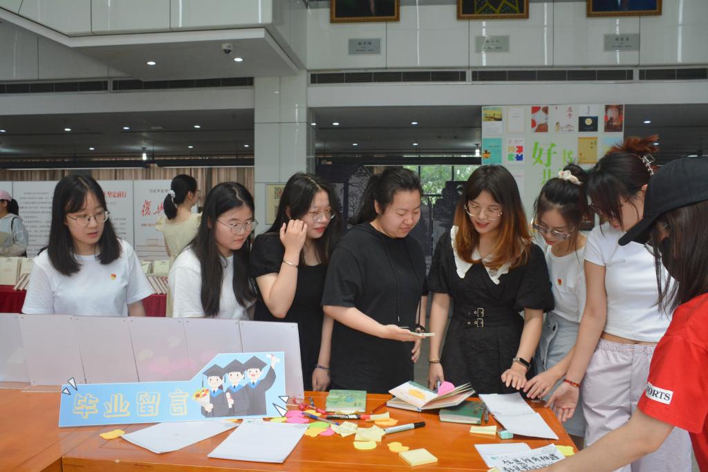 6月15日上午,本科生第二党支部参观由图书馆举办的“学习贯彻习近平新时代中国特色社会主义”主题教育书展,参观结束后开展了毕业生党员座谈会,本科生第二党支部毕业生党员及非毕业年级党员代表出席会议,会议由本科生第二党支部书记汤春燕主持。