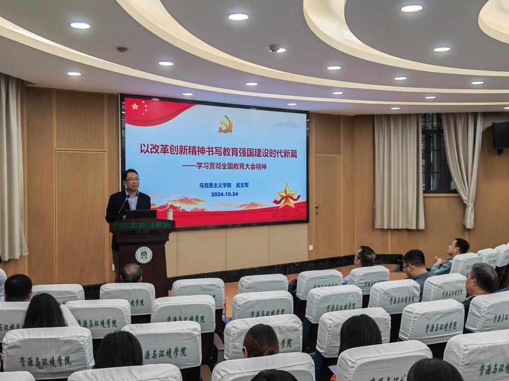 10月24日下午,学院在西附楼报告厅开展全国教育大会精神“精读精讲”专题学习,马克思主义学院副教授武文军受邀以“以改革创新精神书写教育强国建设时代新篇”为主题作辅导报告,学院师生党员代表近百人参加学习。