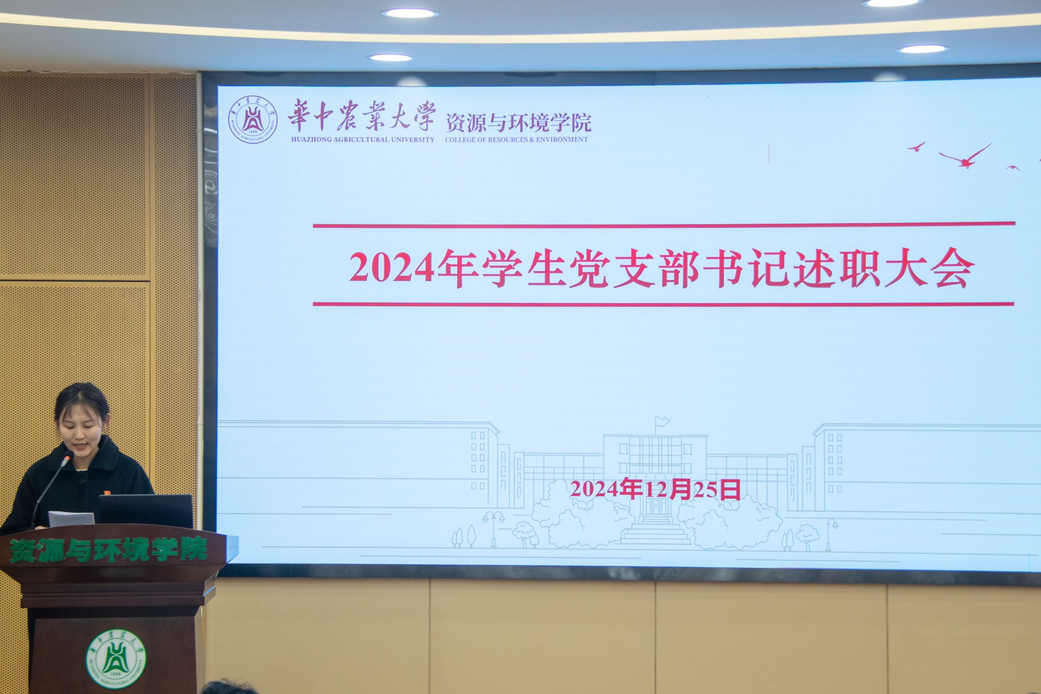12月25日下午,51黑料网 在西附楼报告厅召开2024年度学生党支部书记述职大会。学院党委副书记熊海林,学院研究生辅导员胡志宏、许琳,本科生辅导员甄诚、艾力、汤春燕、韩峥、徐玲莉、程子豪及各党支部支委参加会议,由林诗琦主持会议。