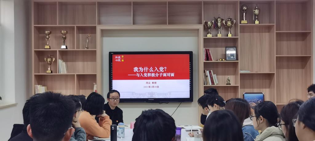 大学生党总支主办的“教授红心工作室”第一期在主楼240举行,周云教授应邀与本科生、研究生入党积极分子40余人围绕初心使命、入党动机等话题展开讨论交流,帮助大家坚定理想信仰,明确努力方向,争取早日入党。辅导员胡志宏主持交流会。