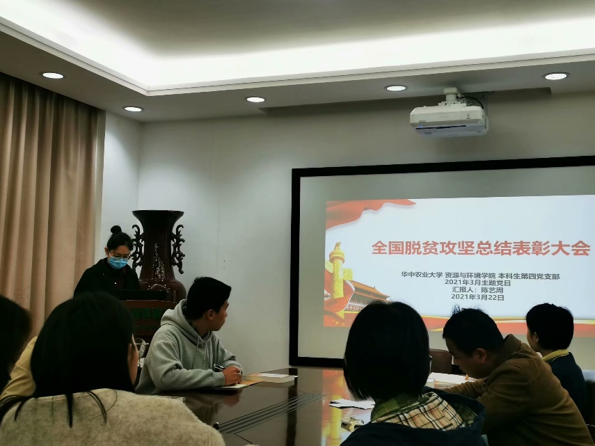 会议第三项,由陈艺周同志带领大家学习了脱贫攻坚总结表彰大会的有关内容。陈艺周同志讲到:“在此次表彰大会中许多英雄被人熟知,比如张桂梅校长,为了学生的发展不惜自己的身体。”同时,经过全党全国各族人民共同努力,在迎来中国共产党成立一百周年的重要时刻,我国脱贫攻坚战取得了全面胜利,现行标准下9899万农村贫困人口全部脱贫,832个贫困县全部摘帽,12.8万个贫困村全部出列,区域性整体贫困得到解决,完成了消除绝对贫困的艰巨任务,创造了又一个彪炳史册的人间奇迹!