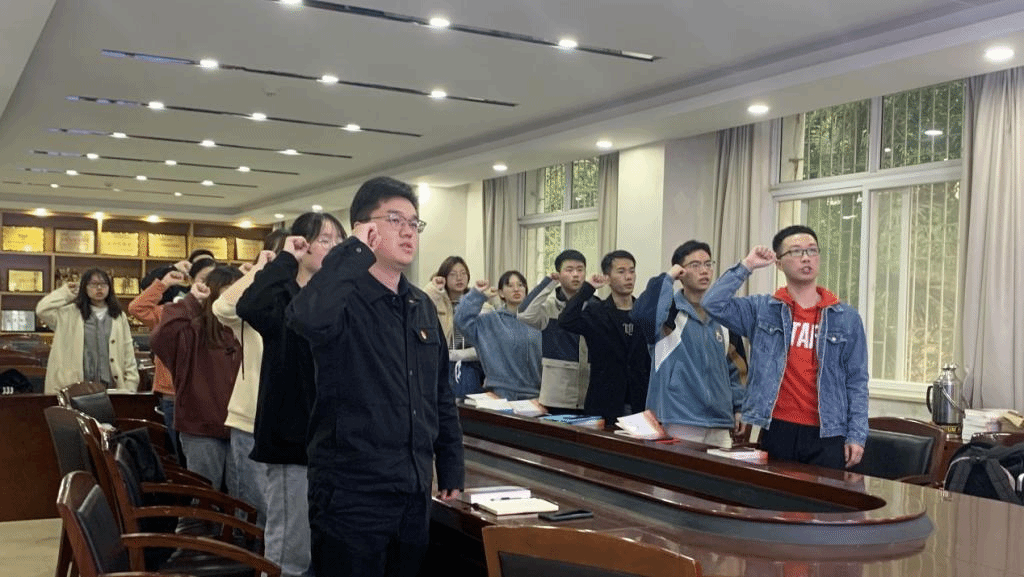 会议伊始,许泽远同志带领大家重温入党誓词,在铿锵有力的宣誓声中,同志们坚定入党初心,砥砺前行。