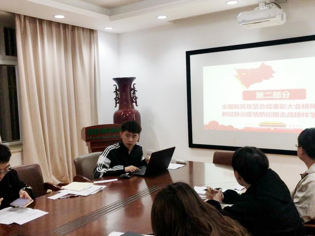 (通讯员 彭珏)3月24日,水土保持研究生第一党支部召开支部3月主题党日活动,集体学习习近平总书记在党史学习教育动员大会上的重要讲话精神、教育部党史学习教育动员大会上的讲话精神、全国脱贫攻坚总结表彰大会精神。支部杨家伟同志、李念同志主持集体学习,支部全体党员、积极分子参加会议。