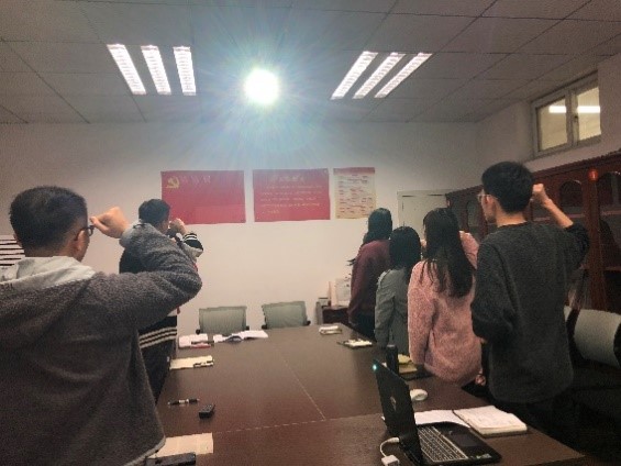 会议伊始,在李宝辉同志的带领下大家高举右手,面对鲜红的党旗,全体党员重温入党誓词宣誓,进一步坚定理想信念,不忘自己作为新时代青年党员的职责和使命。