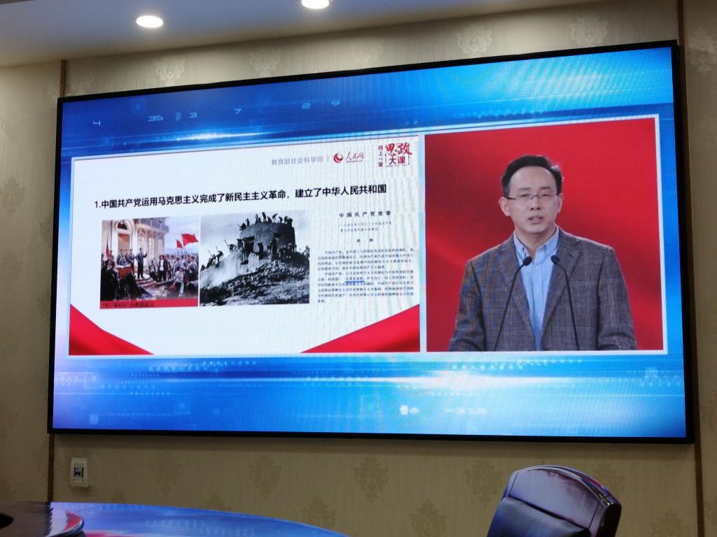在“思政大课”上,北京师范大学教授赵朝峰首先以“马克思主义与马克思共产党的百年辉煌”为主题,为同学们系统地介绍了中国先进分子选择马克思主义与中国共产党成立的历史,展示了从两弹一星到扶贫攻坚等累累硕果,强调了马克思主义是中国共产党指导思想,没有马克思主义就没有中国共产党的重要前提。