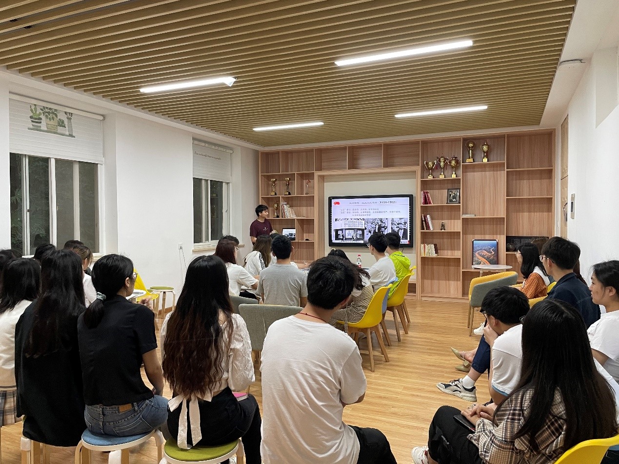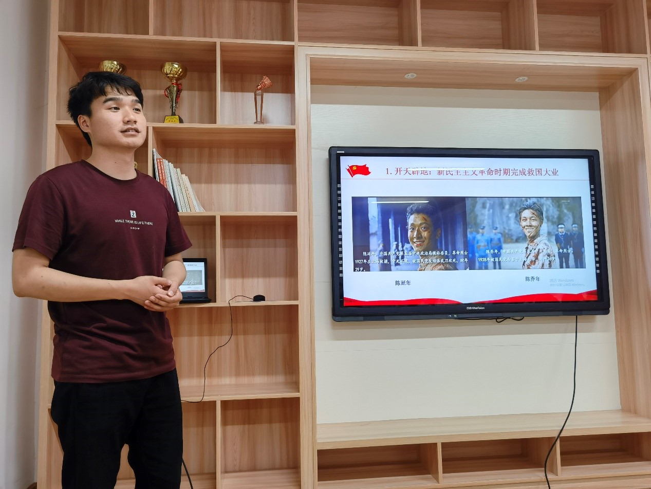 余家福同志从开天辟地、改天换地、翻天覆地、惊天动地四个方面阐述了中国共产党百年辉煌的辛酸与艰苦。在开天辟地板块,他对新民主主义革命时期发生的大事进行了梳理与讲解。由中国共产党的创立及早年的革命活动到第三次国内革命战争时期,余家福同志都进行了深入浅出的精彩讲述,令支部同学受益匪浅。