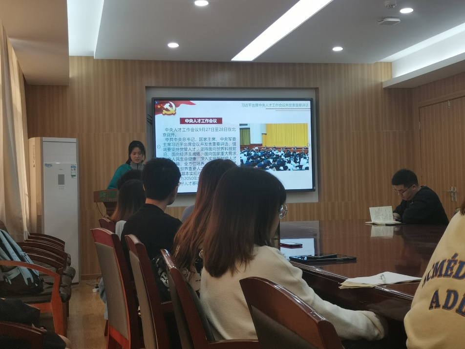 高琳同志带领大家学习了习近平总书记出席中央人才工作会议并发表重要讲话,介绍了讲话中关于重视培育人才、人才强国新理念新战略新举措、加快建设世界重要人才中心和创新高地、深化人才发展体制机制改革、大力培养使用战略科学家等主要内容。
