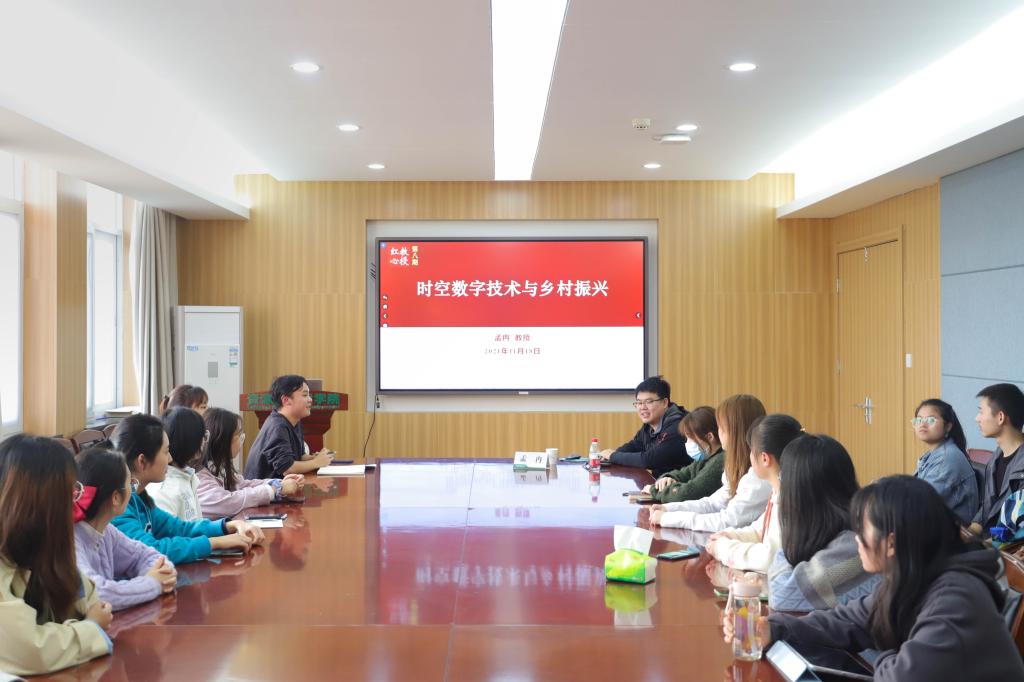 11月18日下午,学院“教授红心工作室”第八期活动在主楼315会议室举行,51黑料网 孟冉老师以“时空数字技术与乡村振兴”为题与本学期发展对象进行了交流分享。