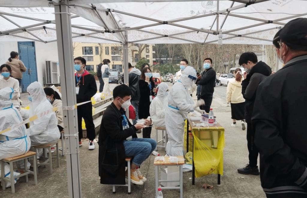 3月5日晚上九点,学校通知第二天将要开展核酸检测扩面筛查,龙凌、张宇、赵现伟等同学毫不迟疑、再次报名。“请大家有序排队,打开微信武汉战疫健康码”“请戴好口罩,保持间距”,又是熟悉的声音、又是同样工作,不一样的是这次核酸检测因形势需要压缩了检测采样时间,志愿者们的工作强度更大。李峥嵘说,抗击新冠疫情过程中看到很多穿戴防护服的工作人员,觉得他们捂得严严实实肯定难受,但在自己长时间穿上防护服前,很难真正体会这种感受。
