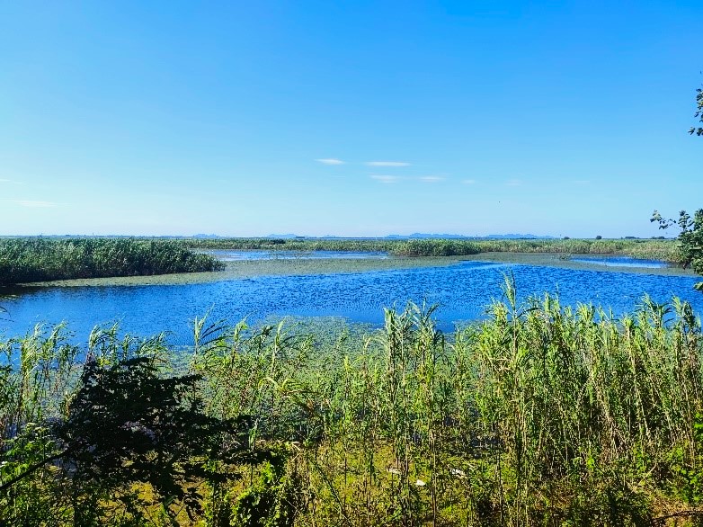 到达村庄后方,实践团发现了湿地的缓冲区,这里的水质与湿地相比,远看去大多被土坝围成方块形,非常具有地方特色。向当地居民进行请教后,实践团得知这种方块形的池塘,是村民自己的鱼塘。自沉湖湿地的保护区建立后,不允许在湿地进行鱼类养殖,但在居民自己的缓冲区内可以进行鱼类养殖。因此,周边的大多数居民因地制宜,充分利用自然资源,在缓冲区的湖水中进行鱼类养殖。与此同时,居民也可以通过鱼类养殖来增加自己的收入,这样也可更好的顺应国家的乡村振兴战略,利用地理优势,发展当地特色产业,提高居民生活幸福感。