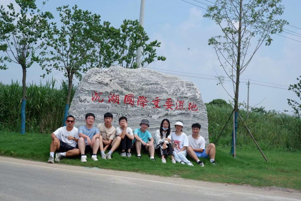 7月11号,社会实践团成员沿着沉湖林荫道,对沉湖附近的植物进行了考察,保护区植物资源较为丰富,湿地维管束植物330种,隶属72科201属,浮游植物7门72属(种)。根据2021版《国家重点保护野生植物名录》,保护区内有国家二级重点保护植物4种,野莲、野菱、粗梗水蕨和野大豆。中国的湿地类型众多,湿地植物多样性丰富,不仅物种数量多,而且有很多是中国所特有物种。据初步统计,中国湿地植被约有101科,其中维管束植物约有94科,中国湿地的高等植物中属濒危种类的有100多种。中国海岸带湿地植物5000种。湿地植物是湿地生态系统的初级生产力,是发挥湿地生态服务功能的基础和前提,湿地植物群落更是促进湿地生态系统发展的重要特征,保护湿地植物更是保护“地球之肾”中的重要内容。