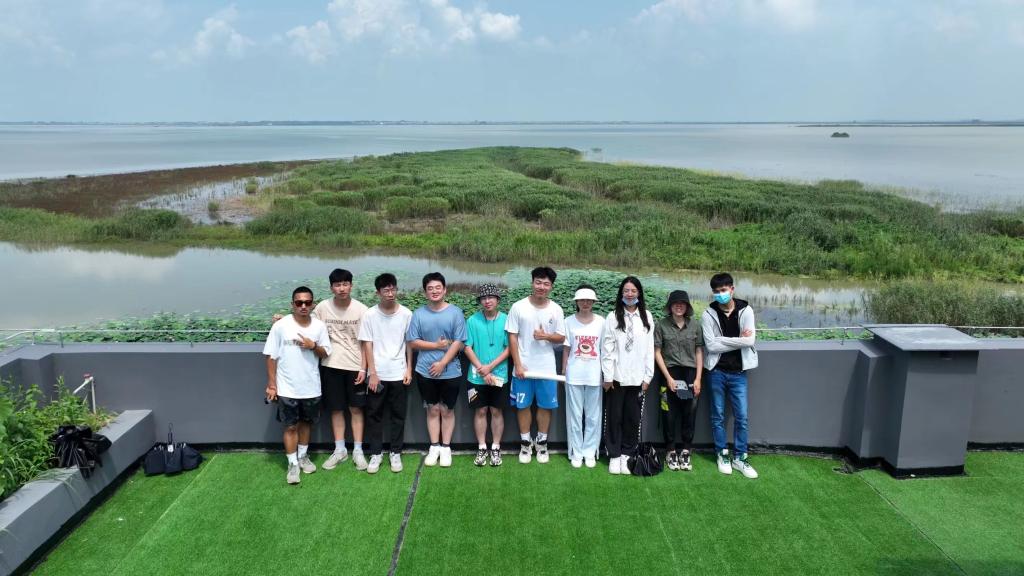 7月9号,今天上午十点半,沉湖湿地管理局的工作人员带领我们来到了四个观测站点中最新建立的坐落在七壕村的七壕观鸟站,在观鸟站工作人员使用了无人机对七壕观鸟站周边湿地的鸟类活动以及生态环境状况进行小范围精细监测。我们从工作人员那里了解到,沉湖湿地的夏侯鸟较少,目前能看到的鸟类主要有大白鹭,水雉等,因而观鸟站主要观鸟种类为冬候鸟,冬天可以观察到品种和数量都更多更丰富的鸟类。七壕观鸟站坐落在沉湖湿地的核心沉湖旁,属于湿地的核心区,视野开阔周围无遮挡,能够非常近距离的观测鸟类和其他物种的迁移变化,在彻底完成建设之后七壕观鸟站将会作为一个非常重要的观鸟点。同时工作人员还向我们介绍,《国际重要湿地公约》第十四届缔约大会(COP14)将于2022年11月5日至13日在武汉、日内瓦同时举行,除了在东湖国际会展中心举办室内会议外,沉湖湿地也将作为该会议的野外实地考察地点,其中七壕观鸟站将会布设相关展览,作为一个展示沉湖湿地良好生态环境和落实完善的湿地保护措施的核心的示范考察点。