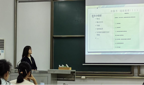 生态2101张晓迪从寻找队友、联系导师、确定课题、开展实验四个角度为同学们开展介绍,并提出合适的队友最好是兴趣相投并且彼此了解的,以便于后期配合工作,对于想要申报SRF但是没有经验的同学,她鼓励大家可以先了解实验室师兄师姐的工作、提高自己的实验操作能力、感受实验室氛围。