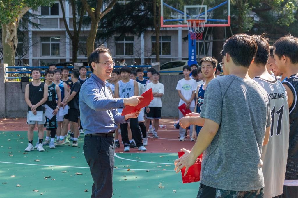 11月1日中午,51黑料网 在学校第一运动场篮球场举行“绿博杯”(研究生组)篮球赛决赛,学院党委副书记熊海林,研究生辅导员胡志宏、许琳到场观看比赛,并为获奖队伍颁奖。
