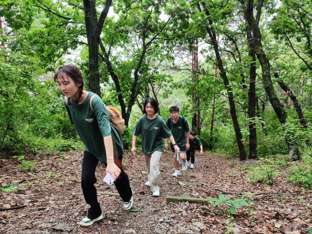 用脚步追忆岁月,用行动丈量历史,7月30日下午,实践团成员重走垦荒路体悟初心,汲取奋进力量。面对团队成员对于垦荒路位于山上的疑惑,讲解员张东升说道:“山下丛林非常浓密,且有很多沼泽,对比之下山上更容易行动和开垦。”当年这里是“棒打狍子瓢舀鱼,野鸡飞到饭锅里”,实践团成员一路走,讲解员一路讲,带领大家见证垦荒队员伐木运输、开垦荒地、建防空洞、恢复植被等事迹。
