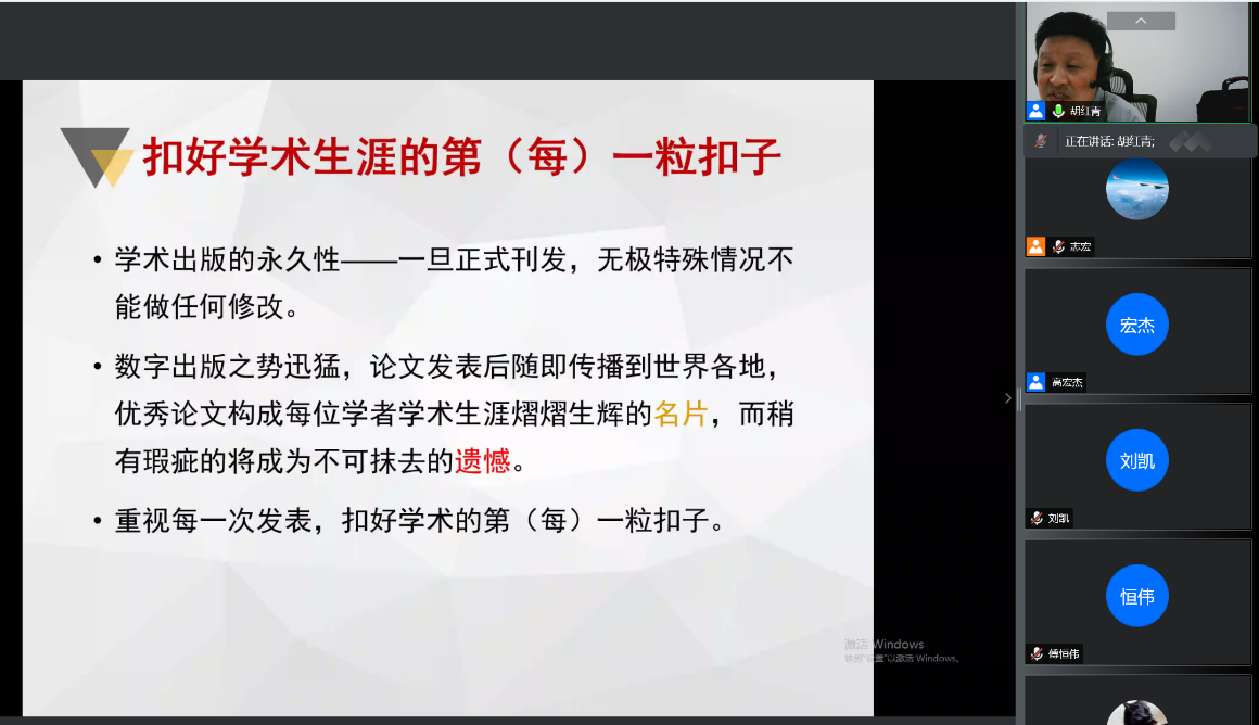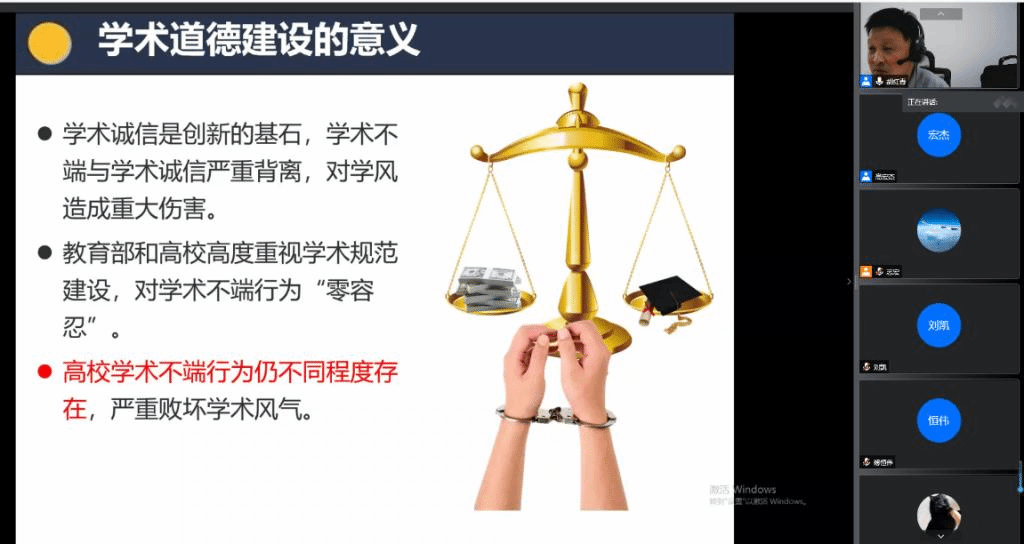 (通讯员 高宏杰)为增强研究生新生的科学道德精神和学风自律意识,优化学院学术诚信环境,培育优良学风,9月17日上午,学院邀请胡红青教授线上面向研究生新生开展学术道德与学术规范教育,研究生辅导员胡志宏主持会议。