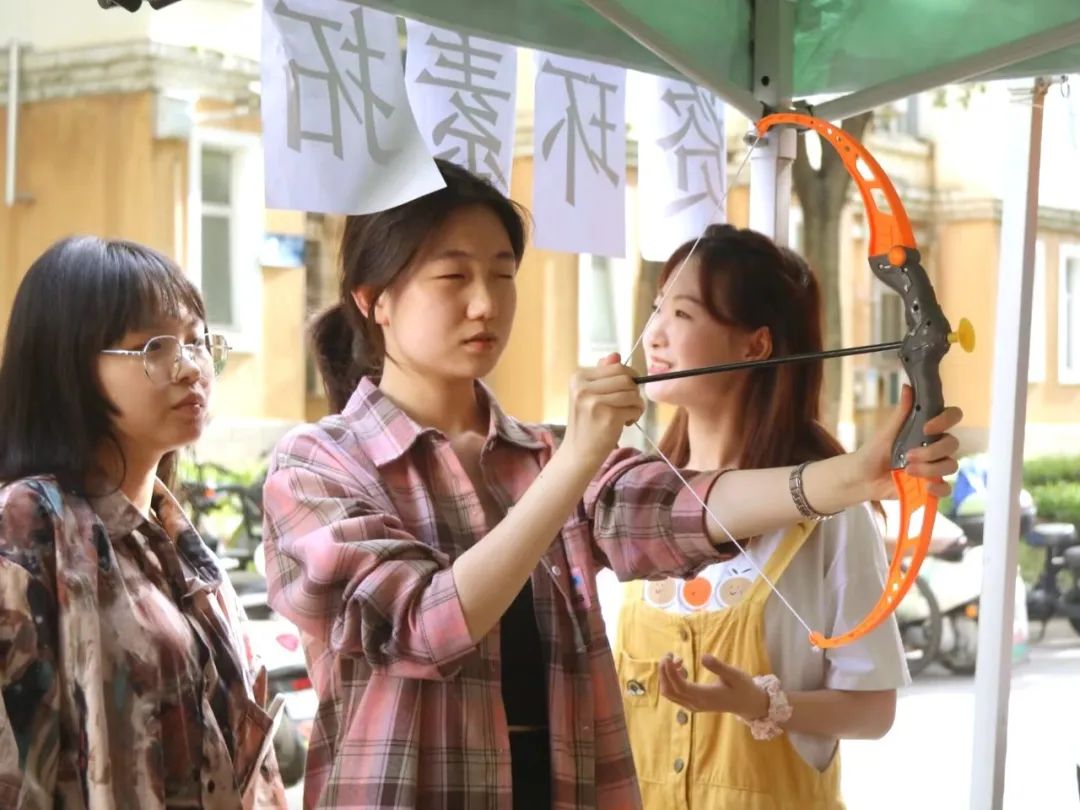 阳光明媚,微风轻拂,同学们穿梭在荟五广场的活动摊位之中。志愿者王雅慧在细心地向同学们介绍活动规则。在试射中,由于难以掌握箭的轨迹,所以同学们大都难以射中,但经过认真练习后,他们慢慢摸索出技巧,掌握了方法。因而在之后的正式比赛中,无论是挑战自己,瞄准大目标的同学,还是追求稳妥,瞄准小目标的同学,都收获颇丰。