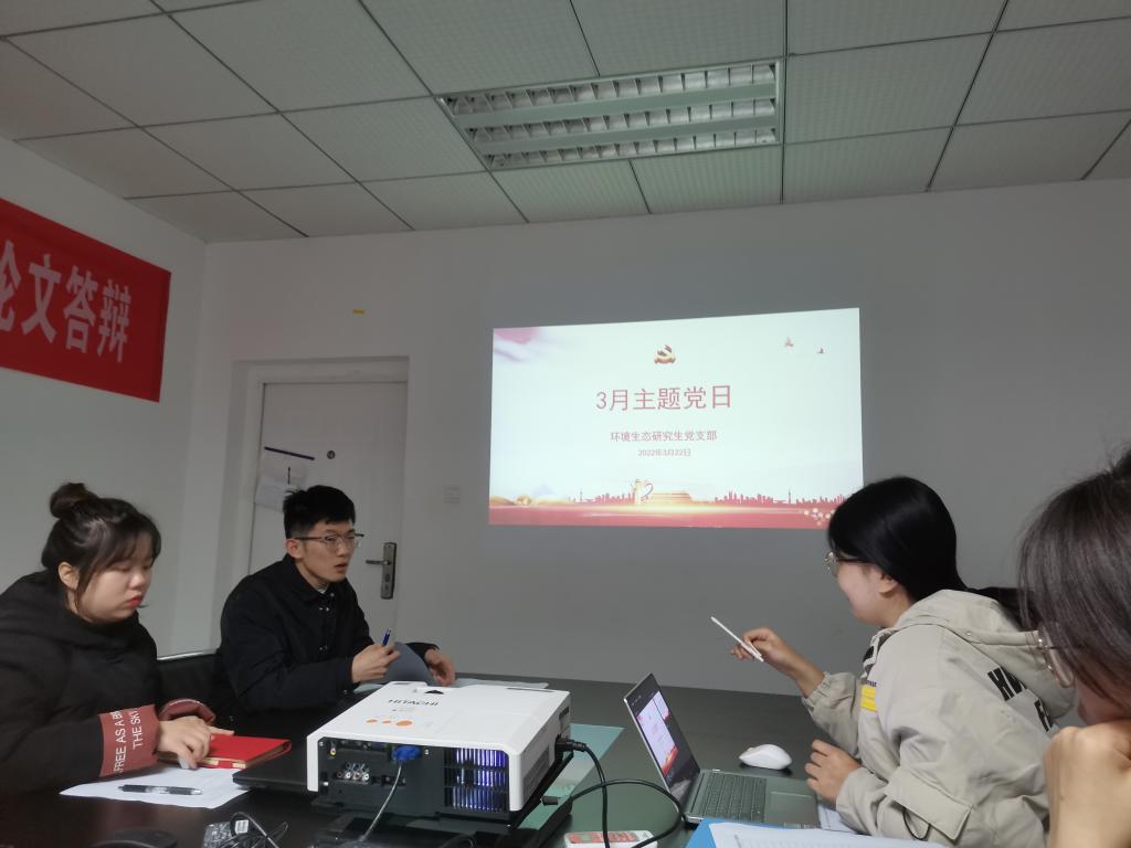3月22日晚,环境生态研究生党支部在东附楼306会议室召开2021年度组织生活会及3月主题党日活动,支部书记陈雅渊主持会议。