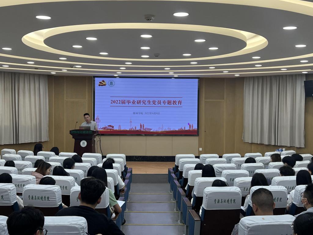 (通讯员 王晗菲)6月9日下午,学院在西附楼报告厅召开2022届毕业研究生党员大会,全体毕业生党员、各党支部支部书记、研究生党建办工作人员参加会议。研究生辅导员胡志宏主持会议。