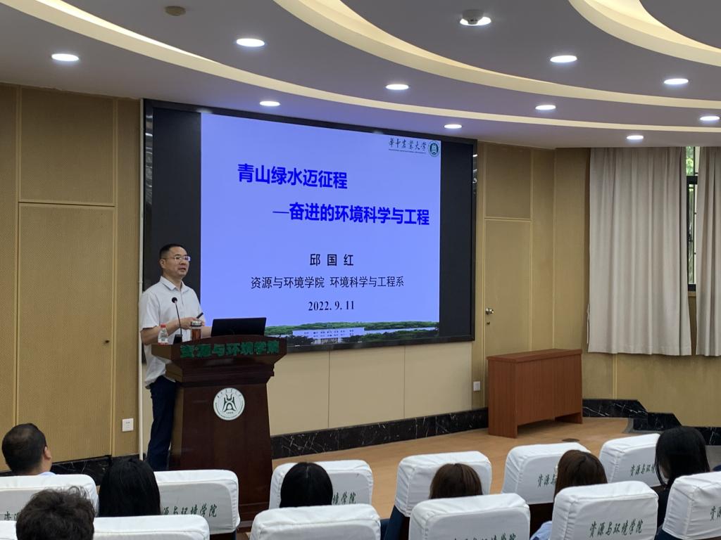 “资环学院办学历史悠久,是学校很多学院的母院,资环学院的发展是学校发展的见证”,9月11日,蔡崇法教授与新生报告“资环学院历史与传承”。“从吃饱到吃好,这为种植业、养殖业等相关专业提供了平台,也为学院土壤农化专业提供了契机;后来随着农业高质量发展造成环境压力,环境科学、环境工程等专业应运而生……”,蔡老师细数学院学科专业发展变化历史,“大家必须要了解自己专业的根,才能从根本上增强专业认同,资环学院历史悠久,专业顺应着国家需要,驱动着华农发展。”对于传承资环精神,蔡老师分享了学院第一台空调、发电机的故事,他勉励大家:“学院是在努力与艰苦中发展的,传承资环精神,大家动手能力不能丢、理论总结要提高、时刻保持危机感”“希望大家牢记历史进程,奋发图强再创辉煌。”