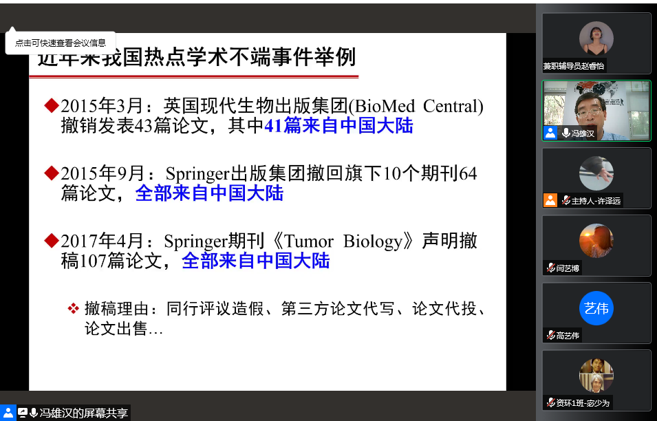 冯雄汉教授、图书馆李翠霞老师分别围绕“如何扣好学术科研‘第一粒扣子’” “图书馆资源利用与文献检索”与新生做了交流。冯老师围绕“发展是执政兴国的第一要务、人才是(发展的)第一资源、创新是(发展的)第一动力”勉励新生弘扬科学精神之外,不忘恪守学术规范。