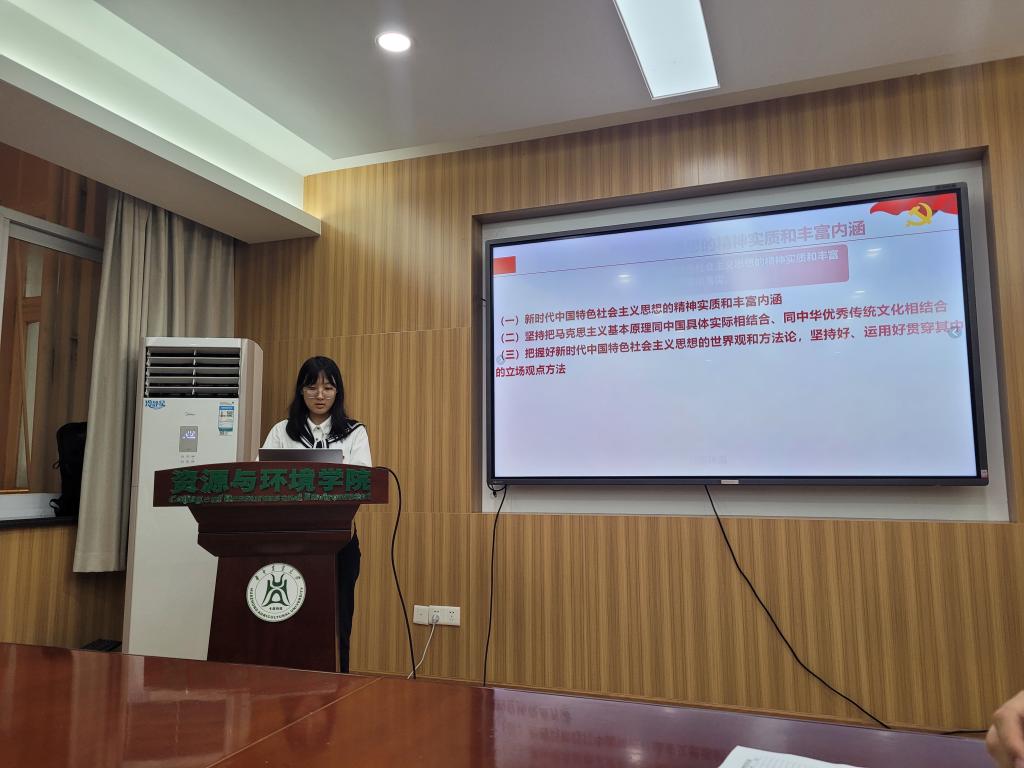 本科生第二党支部赵铮铮同志以新时代中国特色社会主义思想实现了马克思主义中国化时代化新的飞跃为题进行学习分享。她表示,习近平新时代中国特色社会主义思想作为中国特色社会主义理论体系的重要组成部分,实现了马克思主义中国化时代化新飞跃,是党的最新理论成果,对推动中国特色社会主义事业的发展意义重大。本科生第二党支部王娜同志就此交流了学习体会。