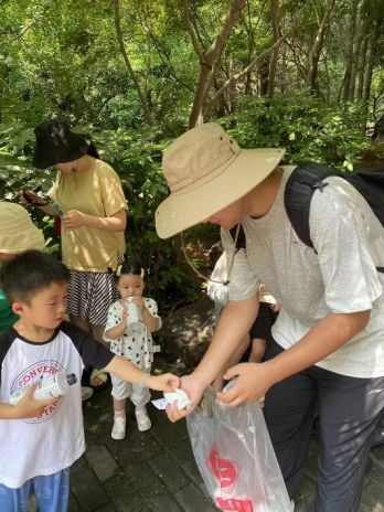 上午,实践团队从岳麓山山脚出发,向着山顶前进。他们一路捡拾垃圾,一路呼吁行人爱护环境、共建美丽中国。一些小孩家长很受触动,纷纷教育自己的孩子要向志愿者学习,不要乱丢垃圾,共同参与创造美好环境。