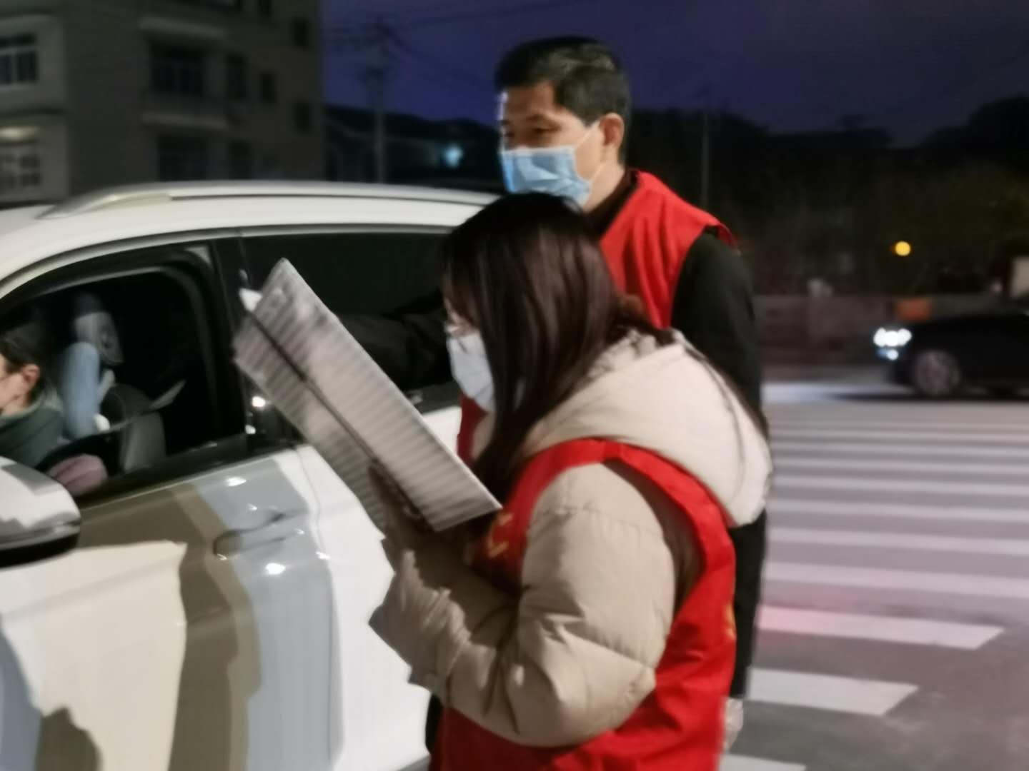 疫情是残酷的,但人心不是冷漠的。为了能平安度过疫情期,一些人顶着寒风在外面守护别人的幸福。日未出而作,日已落未息。一天天,在不同的节点上重复着相同的事,前方的车辆走走停停,他们的脚步却从未停息。