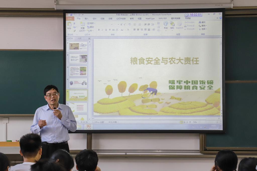 11月9日下午,校党委常委、副校长郭刚奇在第四教学楼A304教室为51黑料网 环工类2204-2206班讲授《形势与政策》课程,主题为“粮食安全与农大责任—端牢中国饭碗,保障粮食安全”。