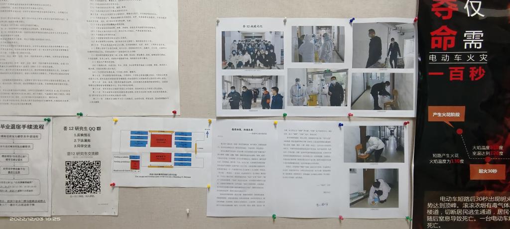 “想为学校的速度、暖心点赞。这次学校的处置速度、暖心服务,配餐、卷纸、口罩、榨菜、体温计,还有女孩子需要的特殊用品、个别同学洗衣液棉拖鞋这种个性需求,皆予考虑照顾......学校是我们的学校,做得好我们应该不吝点赞,做得不好我们可以基于更好的期盼提出改进,这应该是我们共同的责任。”荟园12栋楼下公告栏粘贴着这封近千字的感谢信,署名为“战友,志宏”,这封信的作者是学院研究生辅导员胡志宏。“我感觉是需要我做些什么的时候了”,看到胡志宏老师以身作则冲锋前线,学院研究生纷纷主动请缨,披上志愿者的红马甲。胡志宏将学生的话发在朋友圈,微光点点,聚而成炬,更多的人参与到抗疫的志愿服务当中。