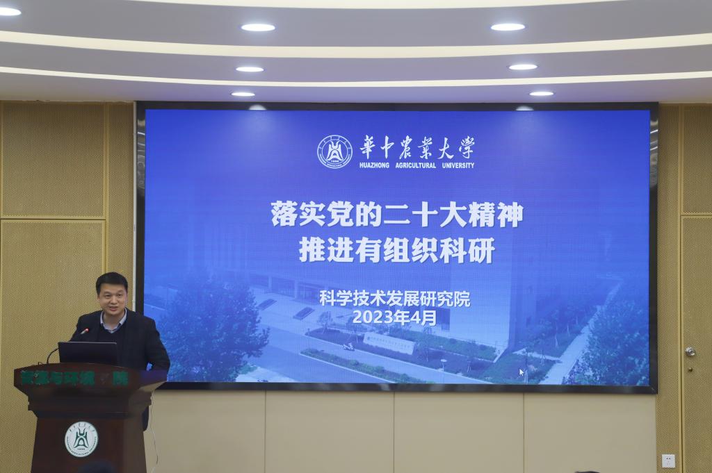 会议邀请科发院常务副院长张拥军作主题为“落实党的二十大精神,推进有组织科研”的辅导报告。张拥军系统解读了党的二十大对科技、教育、人才做出的新部署,并表示加强基础研究、打造国家战略科技力量、推进科技评价体系改革、提升创新体系整体效能对于实现高水平科技自立自强、建设世界科技强国起到积极作用。他肯定了学院科研工作取得的成绩,并对如何开展有组织的科研提出了意见和建议。