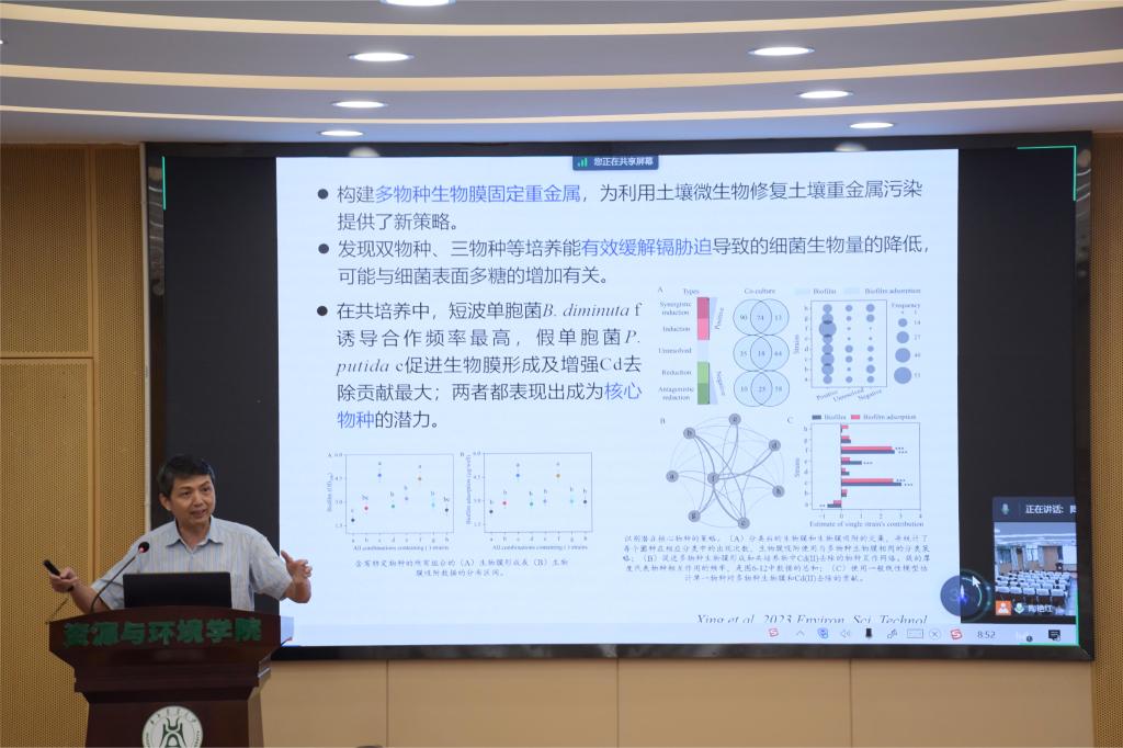 国家杰出青年基金获得者、农业微生物资源发掘与利用全国重点实验室副主任黄巧云教授以“科研教学齐迈进,支撑学科上台阶”为题,提出加强科研团队的高质量建设,加快科研团队的发展,推动生物有机肥产业发展,推广低成本土壤绿色修复技术,助力实现国家碳中和目标。蔡崇法教授报告了我校土壤侵蚀研究的现状与展望,从土壤、植物学、生态学等方面分析了土壤侵蚀研究的不同视角,未来研究重点领域包括加强土壤侵蚀退化与生产力提升等,将土壤侵蚀与粮食安全密切结合。谭文峰教授以土壤界面过程与土壤健康为主题,重点介绍了集约化土地利用驱动下土壤退化机制与生态调控的研究项目,明确地下不同层次根系的养分利用效率,增加生物多样性,发展集约化土壤健康的生态调控技术。而后,学院的其他教师也分别从工作开展、团队建设、科研情况、研究成果、未来发展方向等方面进行了介绍。