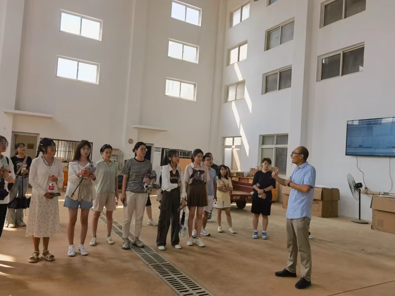 与此同时,在环工基地的人工降雨大厅,王军光老师正在进行人工降雨操作和原理的讲解,而同学们在听讲的同时好奇地观察着降雨装置的构造。