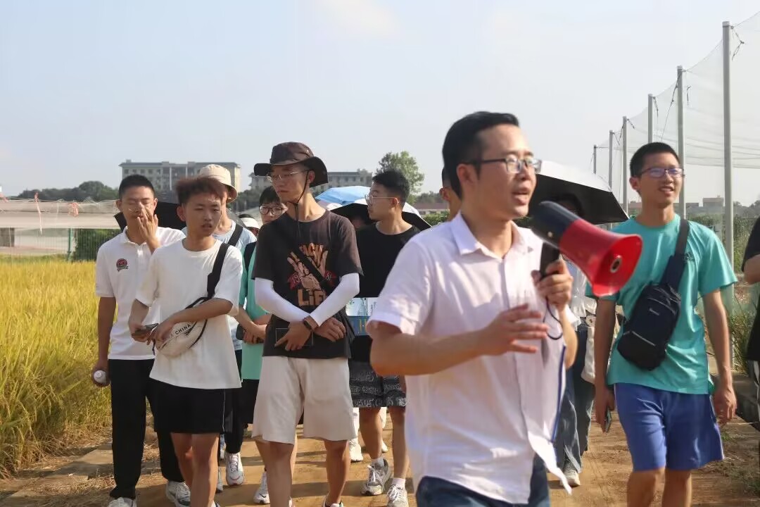 随后,陆老师通过习近平总书记在五四青年节的回信对象“以中国农大为首的、科技小院的、一线的学生”强调同学们要把论文写在祖国大地上。离开微肥楼,他把同学们带往了试验田,向同学们介绍具体的植株情况,一一讲述了植物必需的17种营养元素。现场氛围轻松活泼,大家漫步而谈,脚下是黄土铺散,四周是稻浪轻漪,午后微阳洒在大家身上,尽显华农风采。