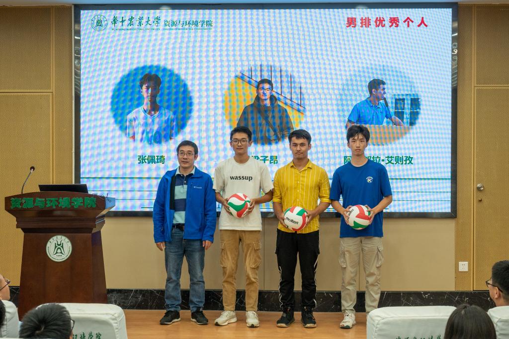 朱强、向荣彪老师为新生男子足球队、新生男子排球队颁奖