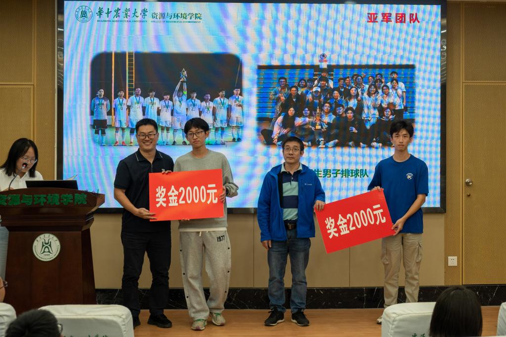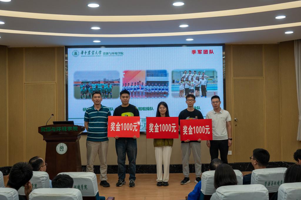 宋艳暾、胡志宏老师为研究生男足、啦啦操队、游泳队颁奖