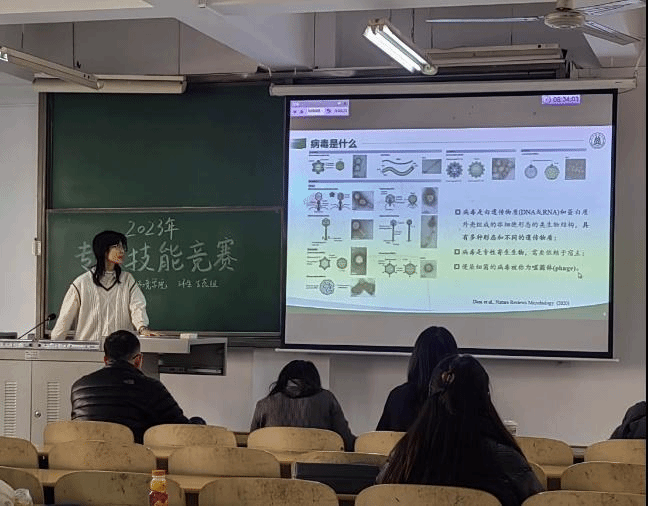 经过组织筹备,来自环生和生态专业的九支队伍,在老师的指导下开展了项目调研与试验等工作,并通过墙报展示和项目汇报的形式呈现了竞赛结果。本次参赛作品涉及范围广、创新性强、且具有实践意义。例如,《硒对核盘菌菌核际微生物群落及致病力的影响》通过研究硒优化微生物群落结构的能力,以提高植物对菌核病的抗性为目的,为菌核病的防治带来新思路;《盐湖病毒的多样性和分布及其影响因素》对小柴旦湖的病毒进行研究,更加深入地了解盐湖生物圈中病毒的分布和多样性;《中美小蓬草生长状况与天敌取食情况的对比分析》对原产地和入侵地小蓬草的叶面损伤、株高等数据收集与分析,评估了天敌取食对小蓬草的影响。