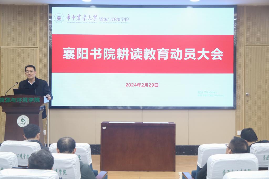 副院长蔡鹏对襄阳书院耕读教育进行动员,他谈到开展耕读教育是服务国家战略之需、建设特色鲜明世界一流大学之需、锻造地方产业发展长版之需、守正创新学习借鉴之需,同时也是服务学科对接产业的需要、提升学院培养人才质量的需要。随后蔡鹏从教学设施、实施方案、准备工作等介绍了学院襄阳书院耕读教育相关内容和安排。