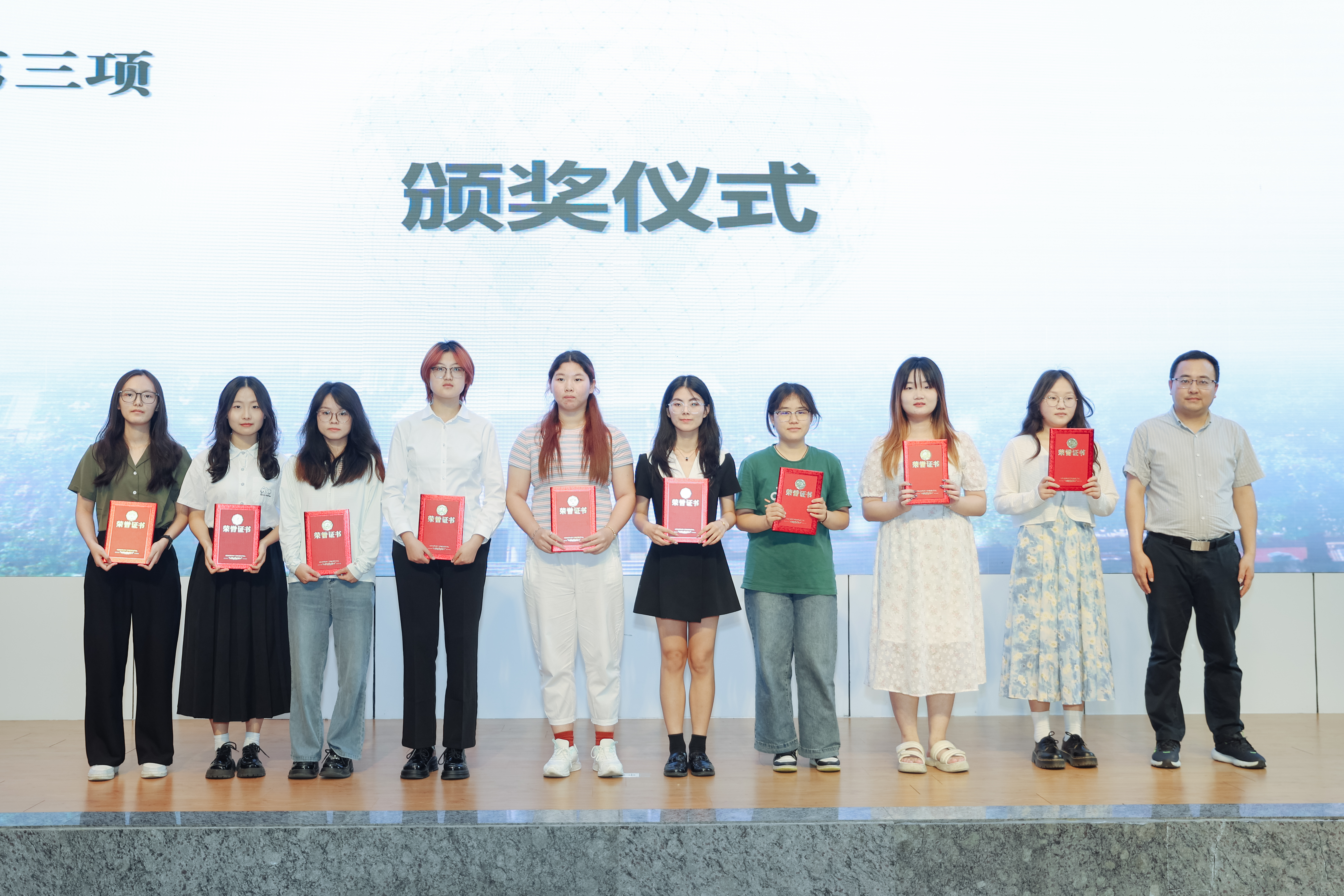 嘉宾为获奖学生代表颁奖