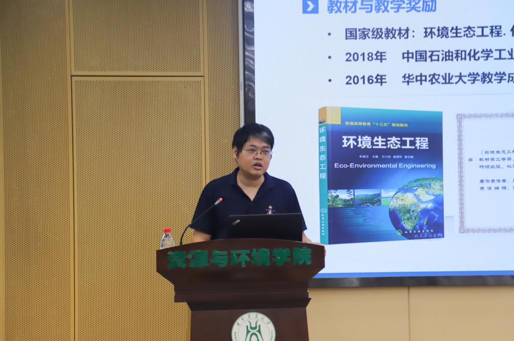 吴一超以《硫肥对水稻重金属累积的影响》为题作报告,他谈到可从宏观现象、微观机制、模型评估三个层面来调控土壤EPS固存以提升土壤质量。针对《环境生态工程》的教学改革难点,万小琼提出可以从加强教材内容的工程特性、建设AI课程知识图谱等方面入手。王玲以坡耕地土壤流失的严峻现状为引,从环境效应、治理技术、与经济发展的协同三个方面来简述相关研究的科研进展与成果。张晓明以“产教融合、校企合作”为重点,讲解了校政企长期高效互惠的合作机制以及需求侧视角下“校政企三位一体”的课程改革要求。