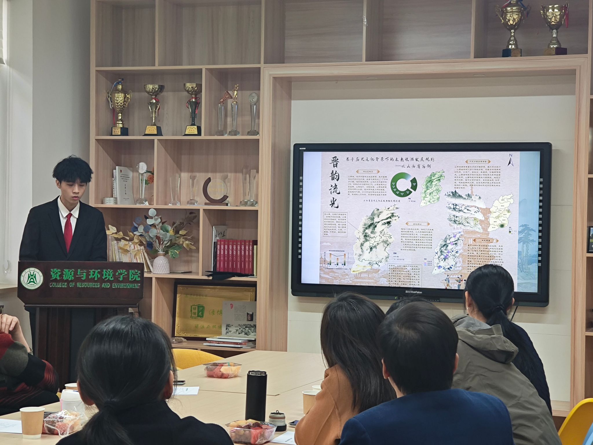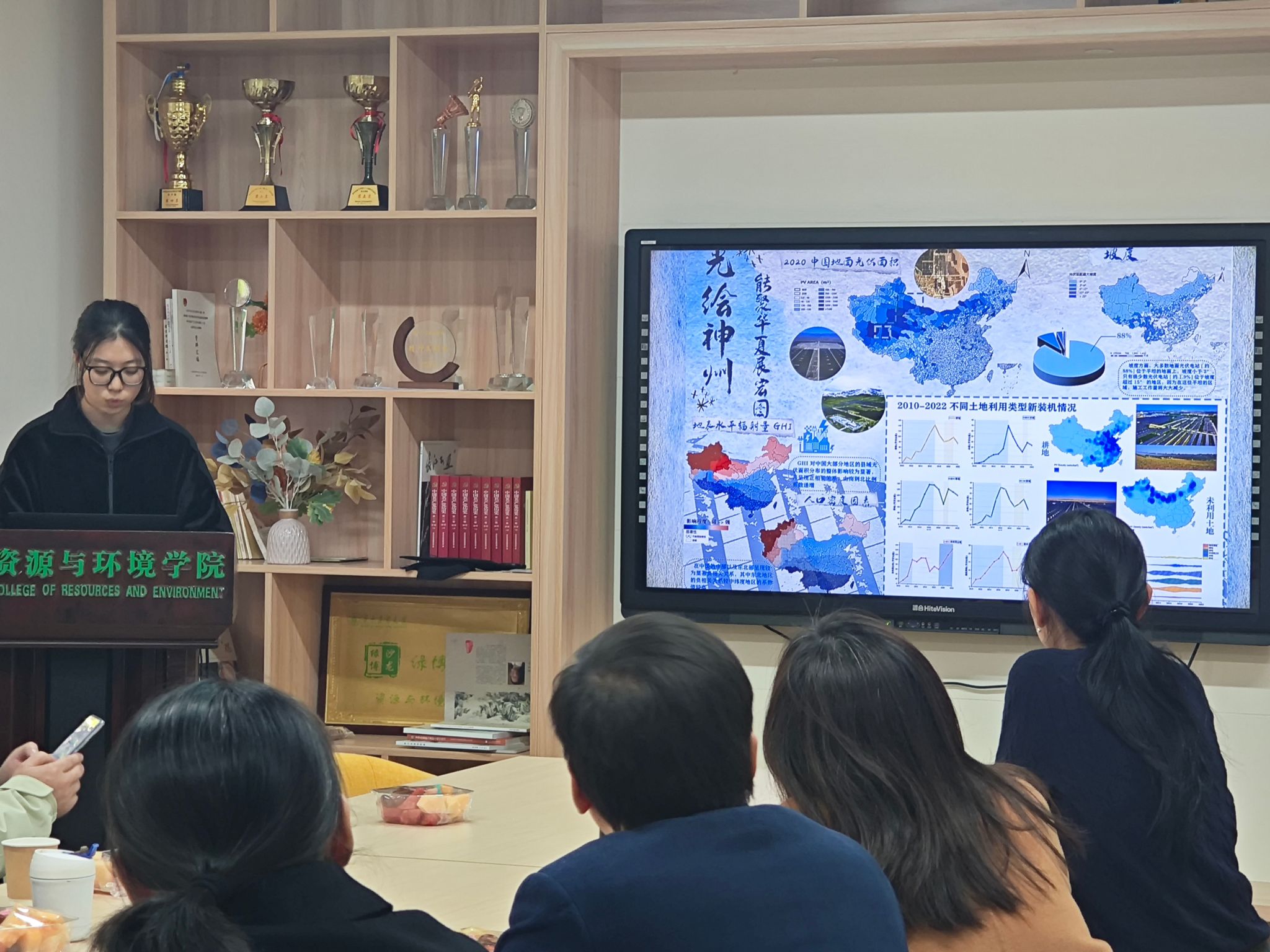 根据现场答辩的实际情况,由现场专家进行了严谨的评比打分,最终,“光耀华夏,辉映绿途——中国光伏电站空间布局分析及展望”荣获一等奖;“基于遗传算法的城市旅游线路规划”、 “时空穿梭:探索历史遗产与未来旅游发展的交汇点”荣获二等奖、“灯火阑珊处:基于夜光遥感分析中国西部贫困率”、 “追踪风暴:近年来登陆中国的台风路径与影响范围可视化分析”、 “山西与《黑神话:悟空》取景地之缘”荣获三等奖。